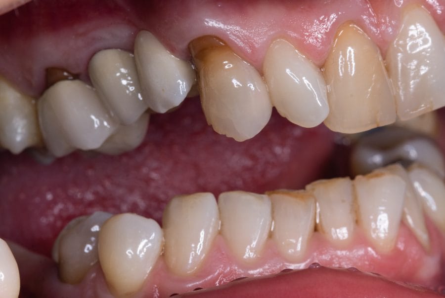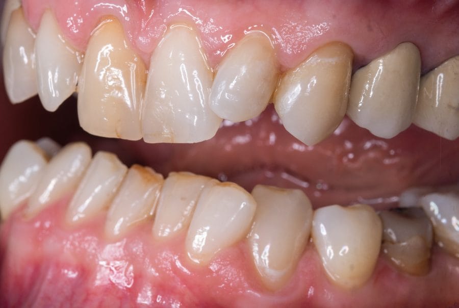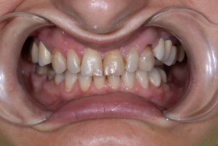 The approach to this complex case focused on restoring correct dental positions, rebuilding the occlusion and the aesthetic appearance of the smile. Following orthodontic treatment, the volume and shape of the future teeth were digitally planned, edentulous spaces were restored with implants, and all teeth were rehabilitated with full ceramic veneers and ceramic crowns on zirconia.